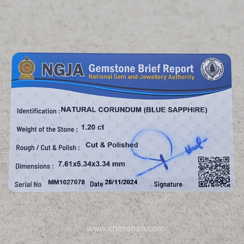 Cornflower Blue sapphire 1.20 carats, Sri Lanka